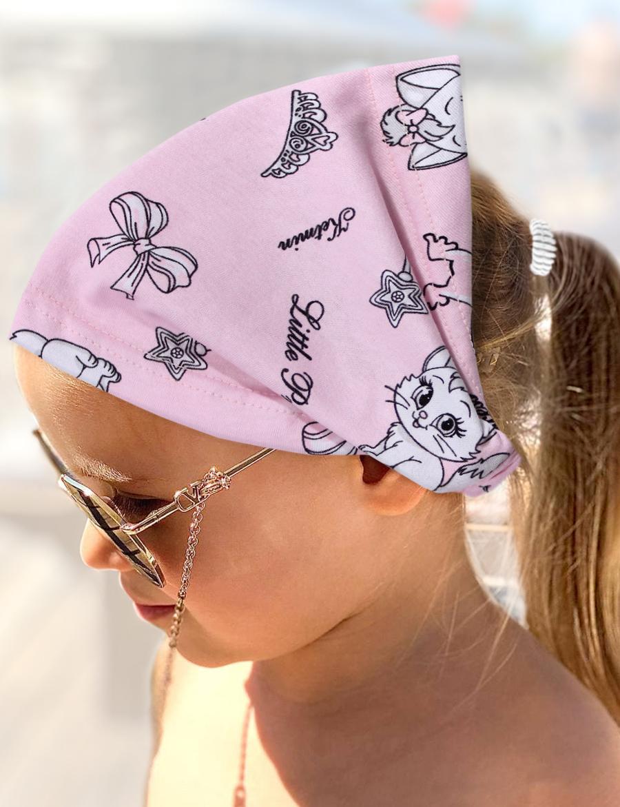 Детская бандана для девочки. Выполнена из мягкого хлопкового трикотажа с лайкрой. Ширина регулируется за счёт резиночки на затылке. Предназначена для летних прогулок в жаркую солнечную погоду, незаменимая вещь для отдыха на море, защита ребёнка от прямых солнечных лучей. Хит летнего сезона.