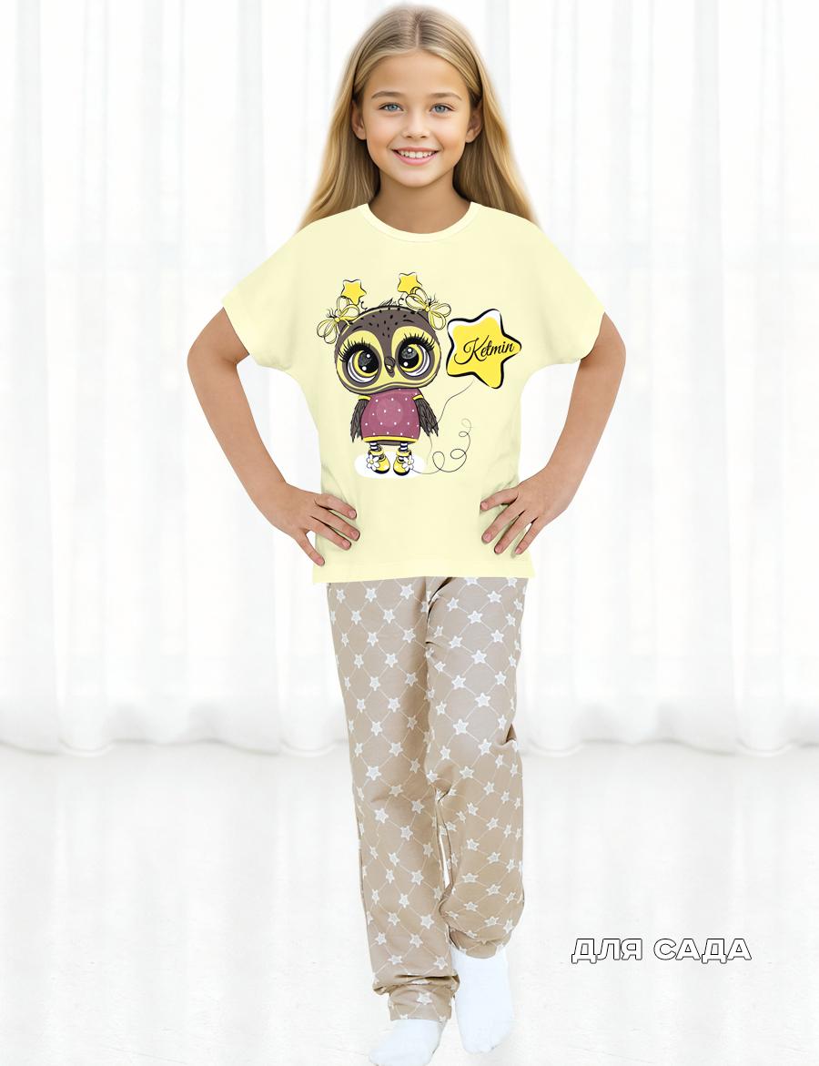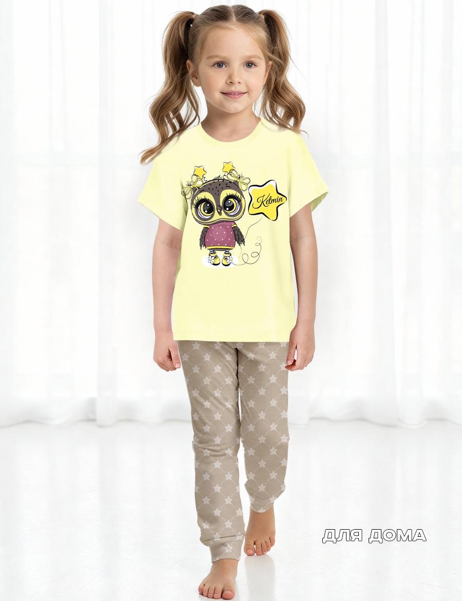 Комплект домашний Совушечка от бренда KETMIN. Материал трикотажное полотно с лайкрой высокого качества пенье, изделия из него комфортны в носке и хорошо держат форму. В домашний комплект входят штанишки свободного кроя с нежным рисунком звезды и футболка со спущенным плечем кремово-желтого цвета. Мы уверены, что этот LOOK станет любимым в домашнем гардеробе ребенка.