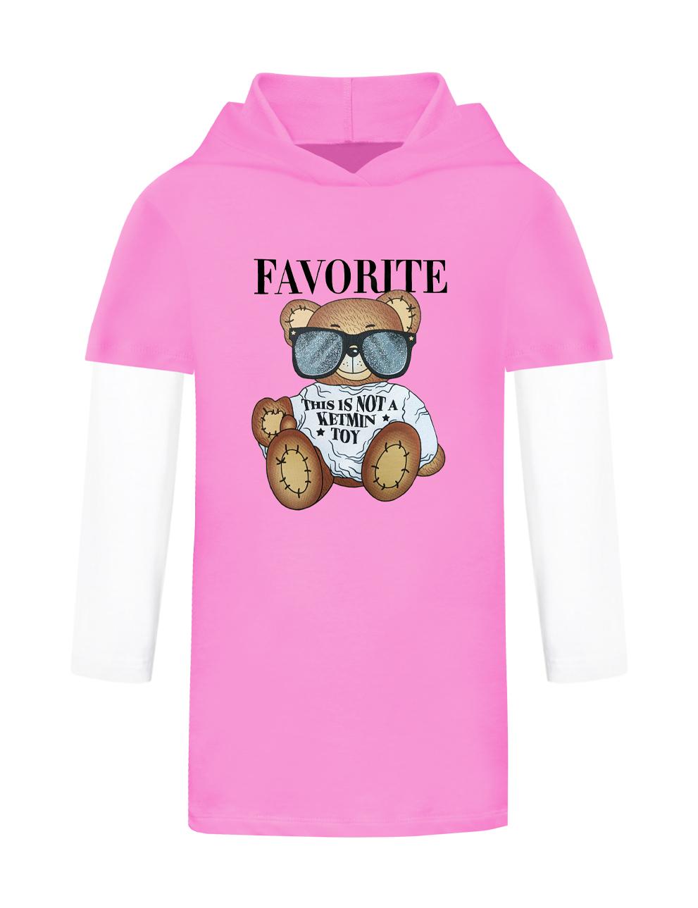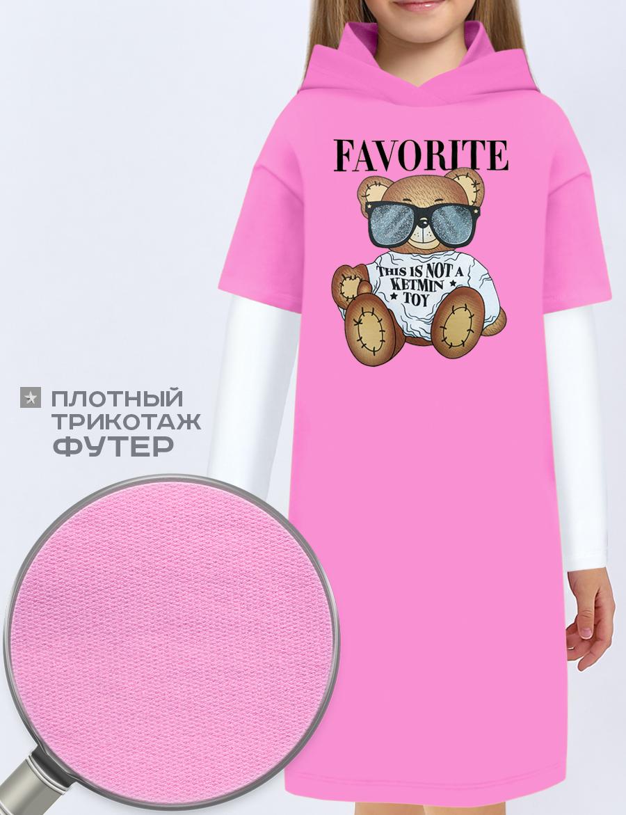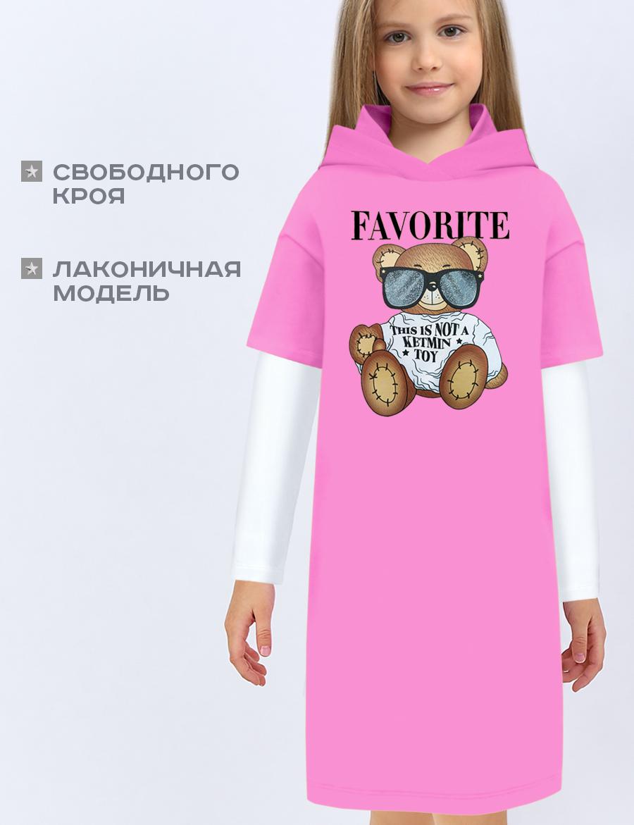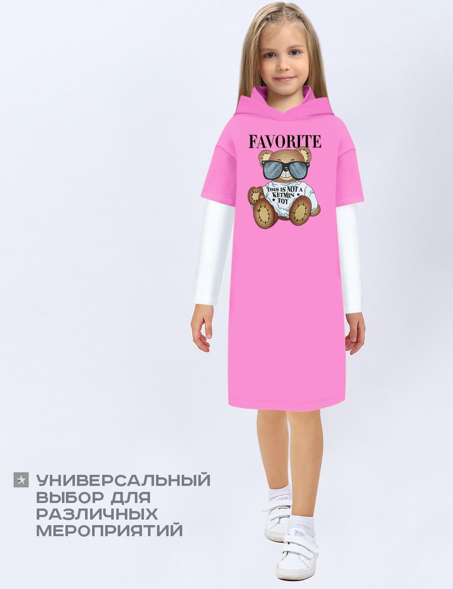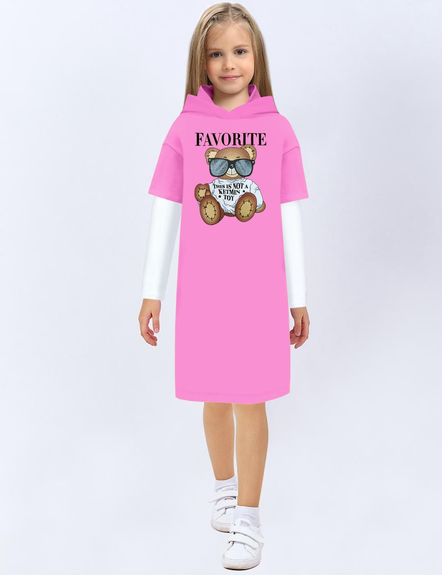 Платье-туника с капюшоном для девочки от бренда КETMIN из высококачесвенноего футера пенье с добавлением лайкры. На груди яркий принт Мишка, благодаря технологии нанесения не линяет после многократных стирок. Ткань очень приятная к телу, не скручивается и не пилингуется. Стильное повседневное платье. Хит весенне-летнего сезона. Осенью можно носить с лонгсливом под платье. Смотрится очень стильно и оригинально.