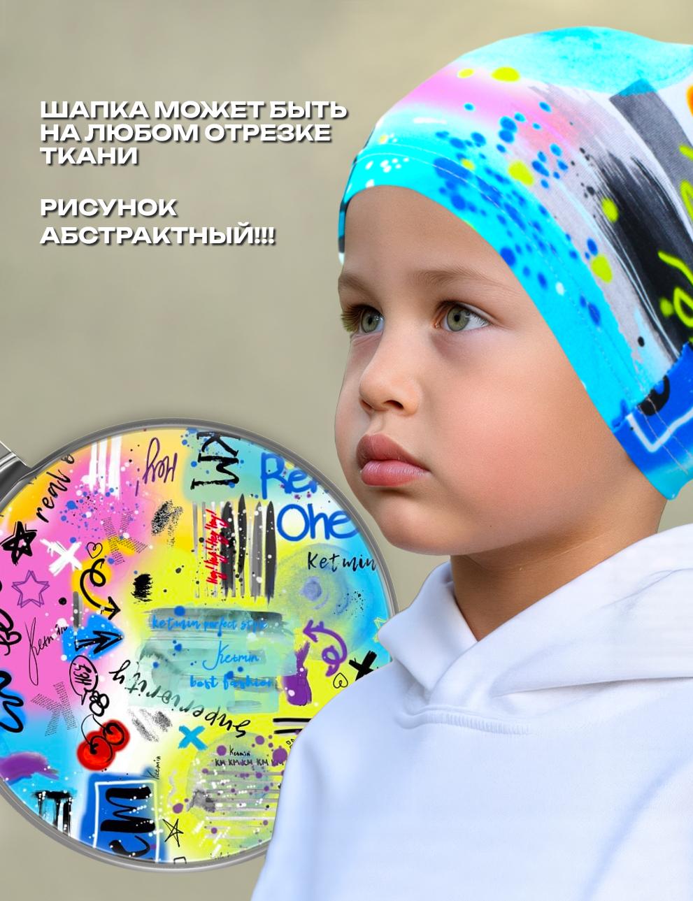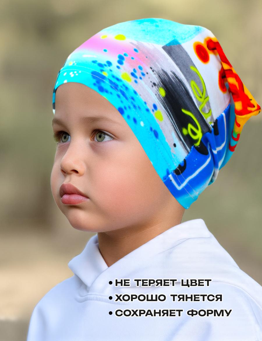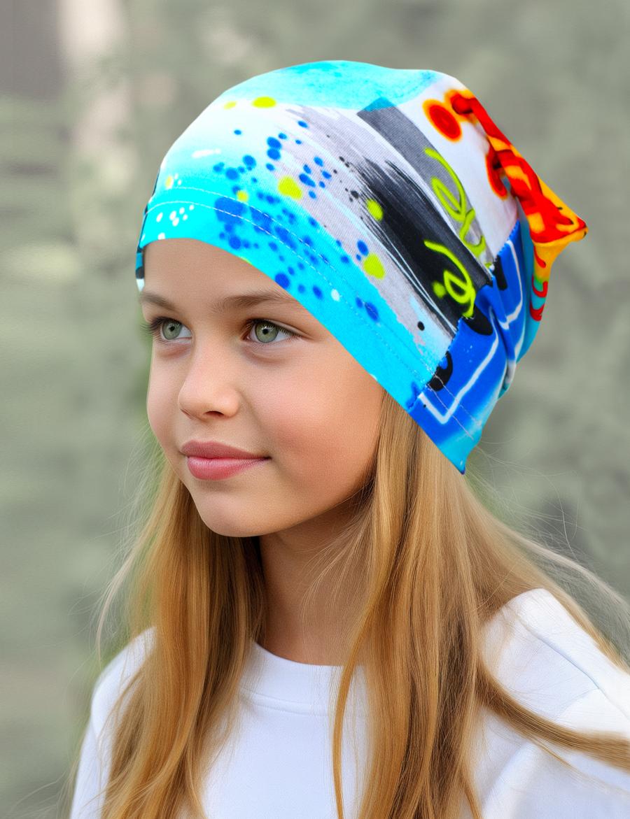 Детская трикотажная шапочка. Благодаря технологии нанесения принт не повреждается после стирки. Изделие очень комфортно благодаря использованию мягкого хлопкового трикотажа самого высшего качества пенье с добавлением лайкры. Лёгкая трикотажная шапочка, подходит для летних прогулок и защиты ребёнка в ветреную погоду.
