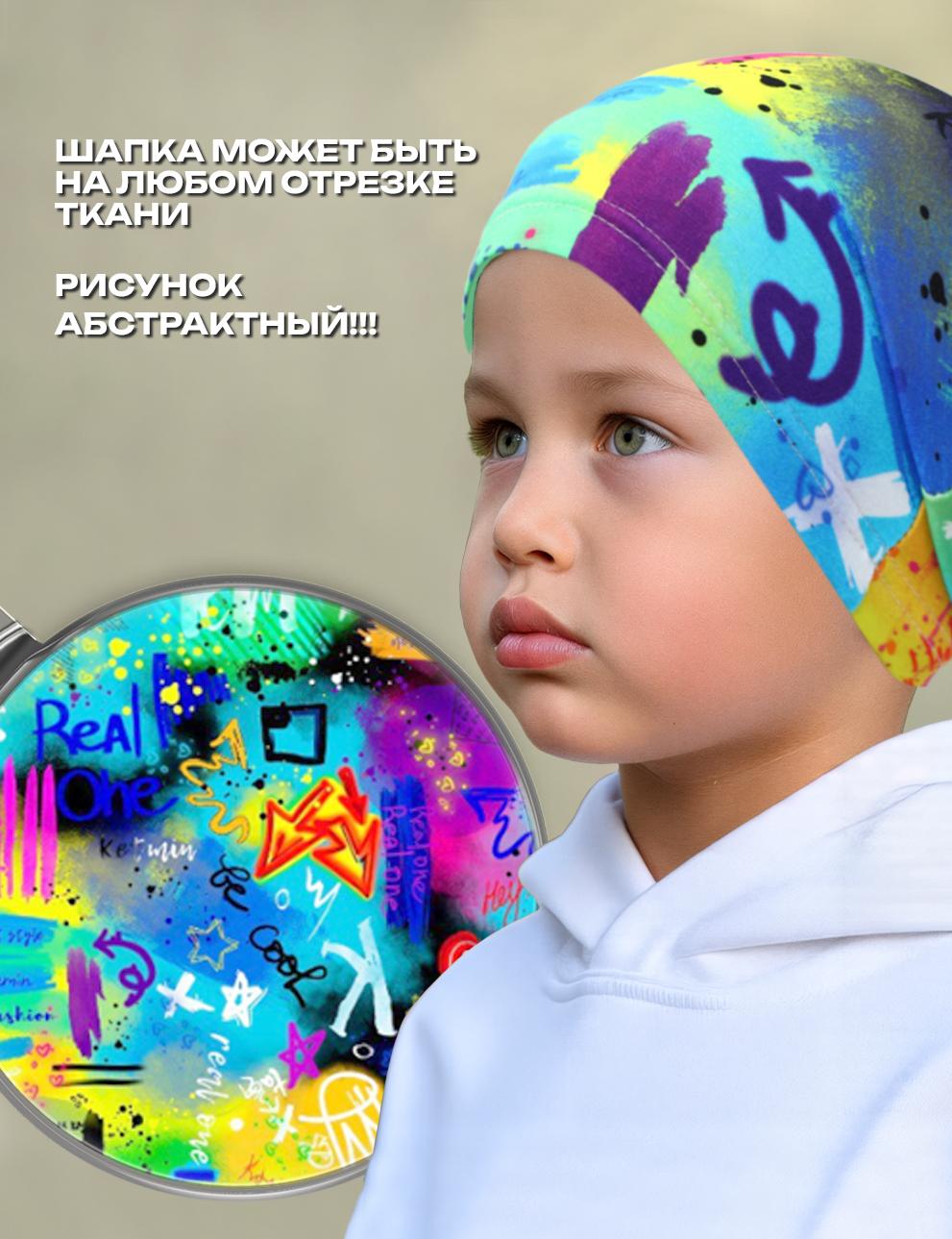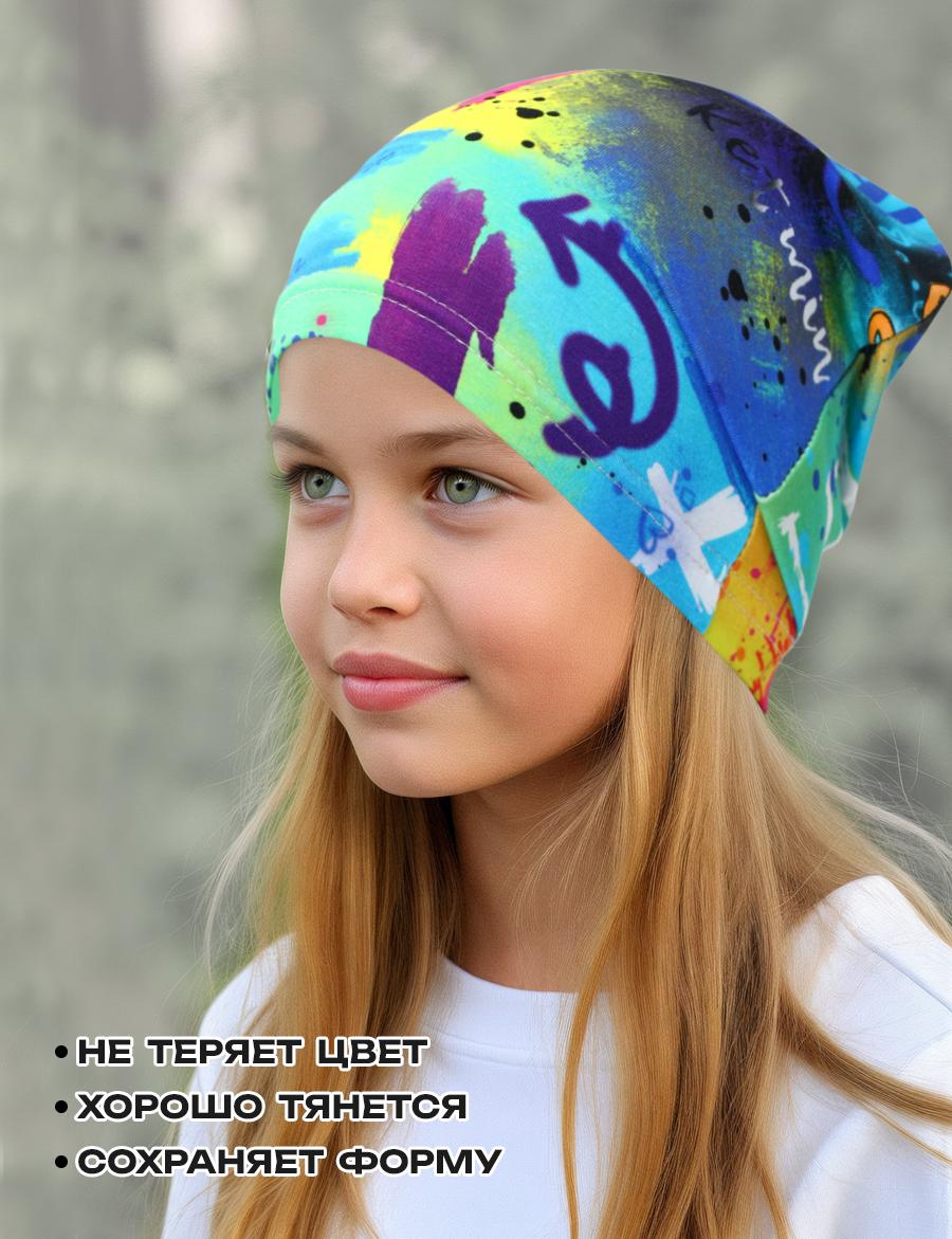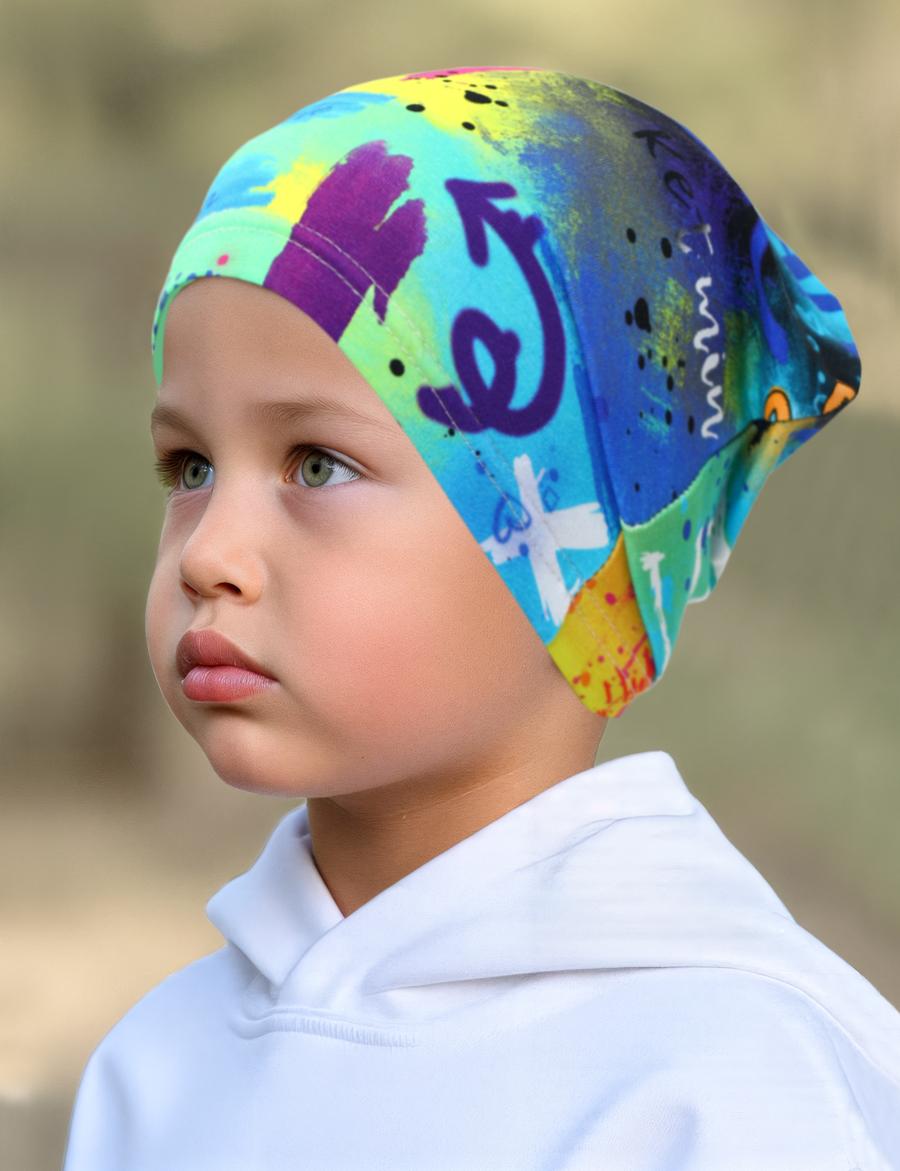 Детская трикотажная шапочка. Благодаря технологии нанесения принт не повреждается после стирки. Изделие очень комфортно благодаря использованию мягкого хлопкового трикотажа самого высшего качества пенье с добавлением лайкры. Лёгкая трикотажная шапочка, подходит для летних прогулок и защиты ребёнка в ветреную погоду.