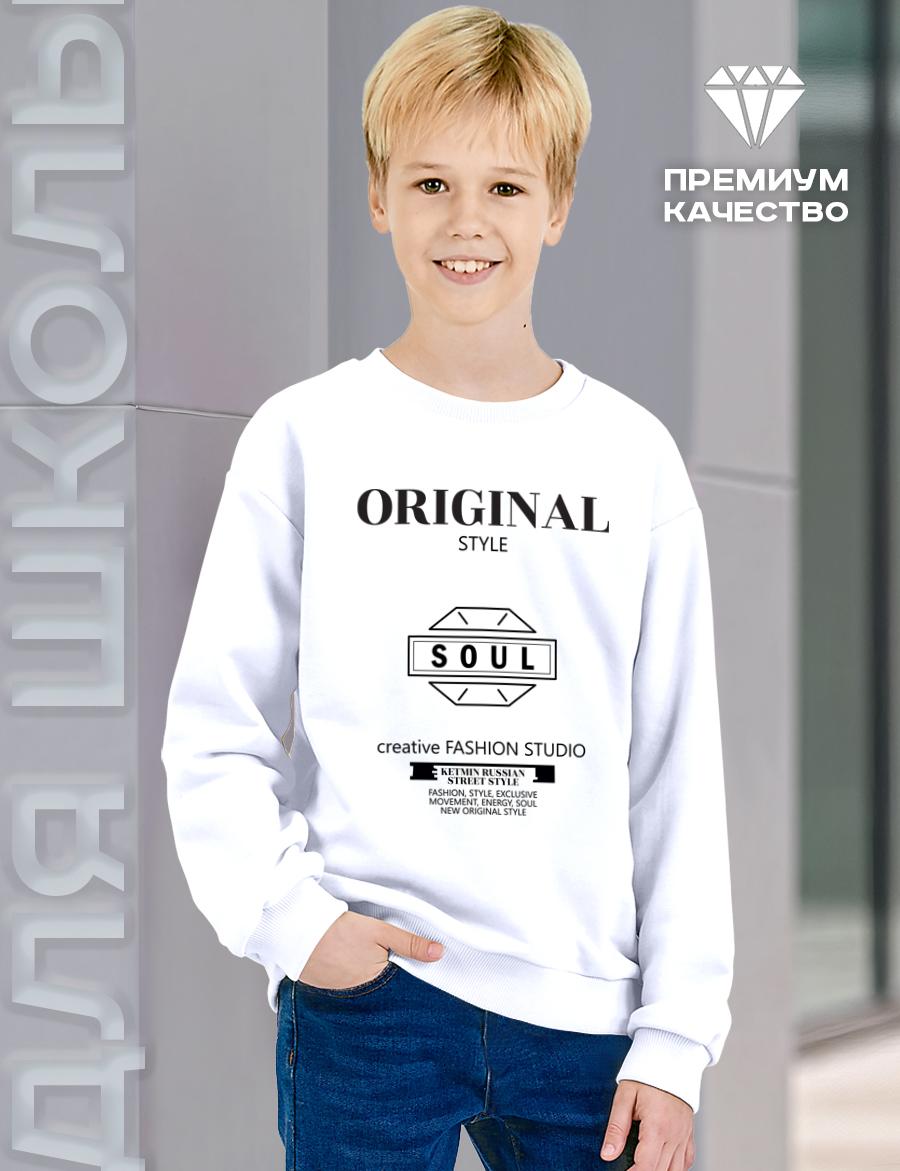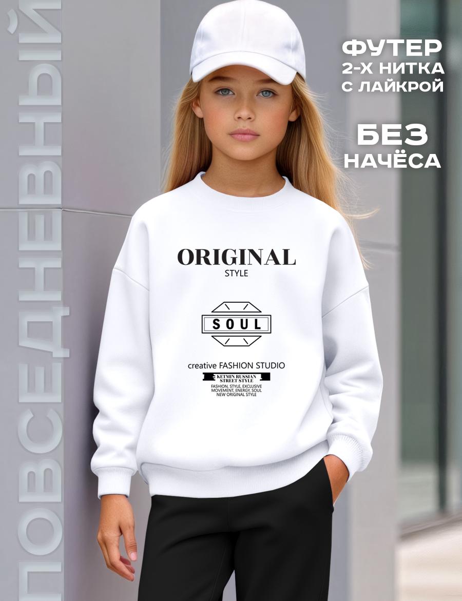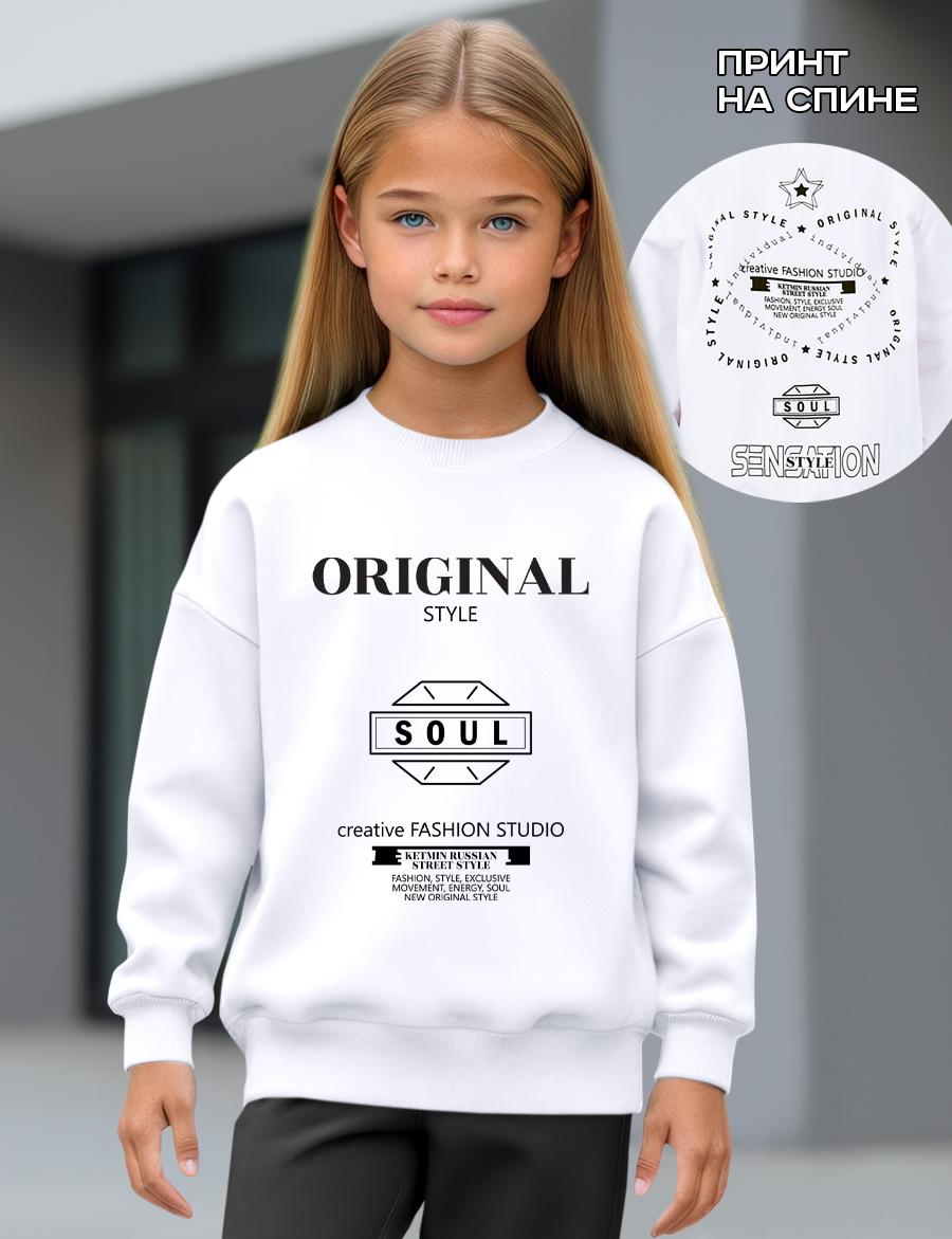 Свитшот белого цвета с принтом на груди и на спине, невероятно стильно смотрится и подходит как для праздничного вечера, так и для повседневной носки. Благодаря технологии нанесения печать не повреждается после стирке. Эластичные манжеты на рукавах и внизу свитшота. Изделие очень комфортно благодаря использованию мягкого хлопкового трикотажа высшего качества пенье с добавлением лайкры.